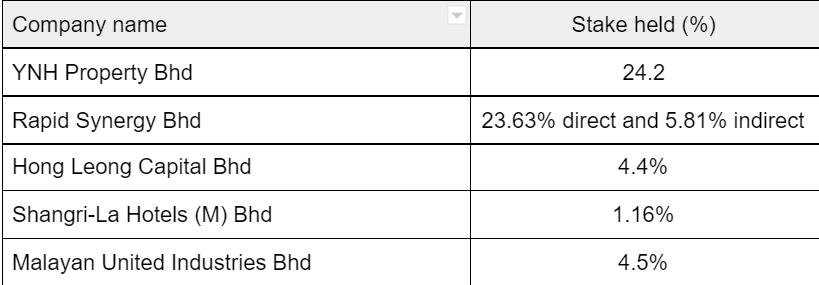According to HLCap’s annual report, the tycoon has some 4.4% in the company as at Aug 31, 2021.